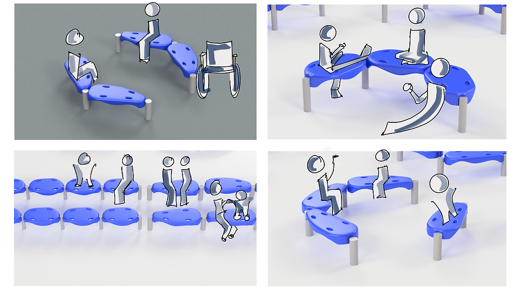 Making the seats accessible required making sure each piece met transfer pad width and length standards (24''x14'') and included handles to facilitate transfer from a mobility device onto the seat.